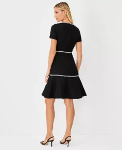 In a flattering ribbed stitch, our lightly flared sweater dress is one of the easiest pieces you’ll own. Boatneck. Short sleeves.