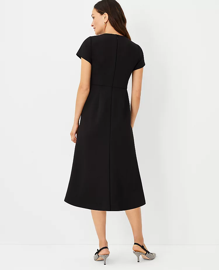 The stretchy yet sophisticated wrinkle-resistant fabric of this fit and flare style is comfort-chic at its finest. It also plays very well with othersโmix and match the collection with ease. Jewel neck. Short sleeves. Hidden back zipper with hook-and-eye closure. Lined bodice. Shop all Double Knit Suiting